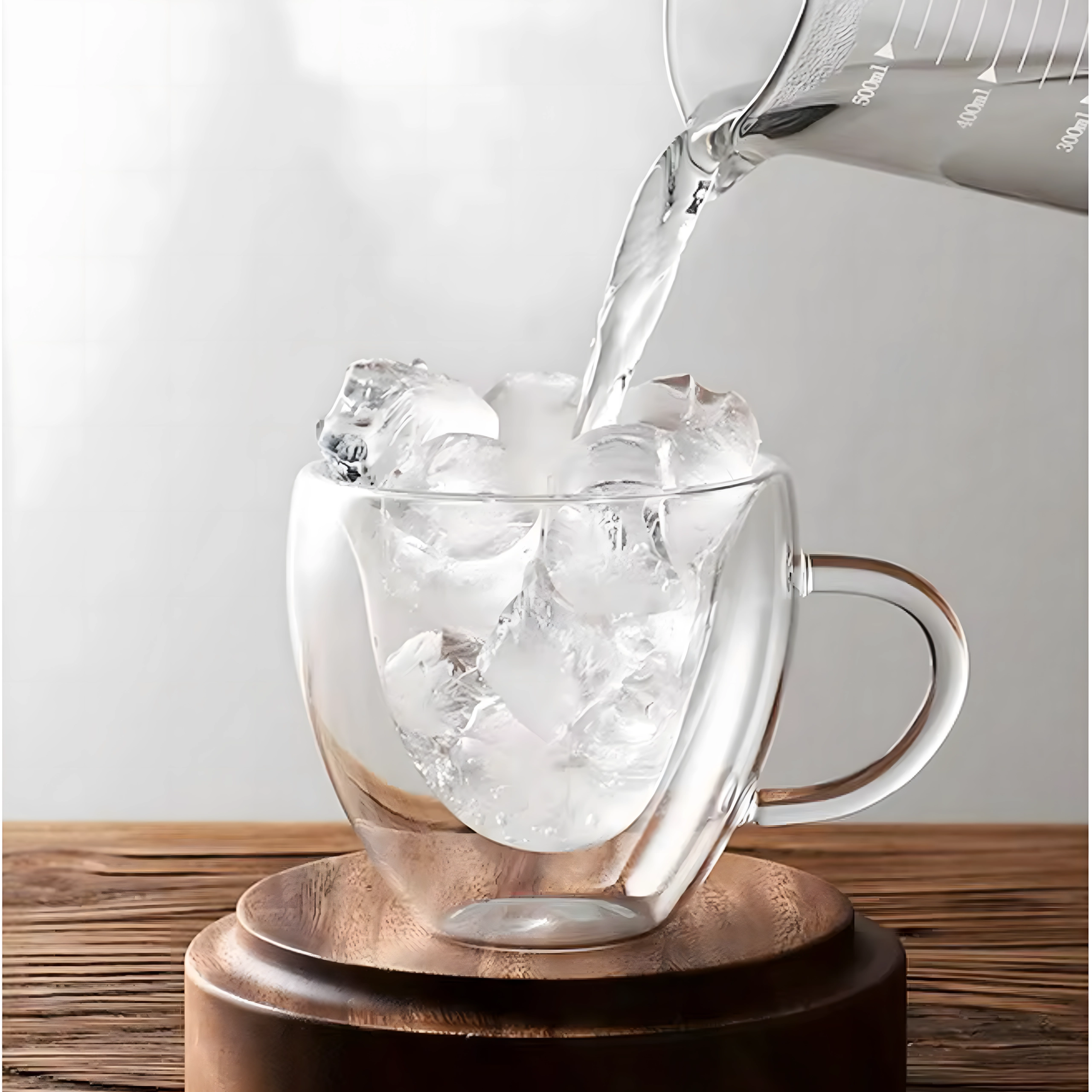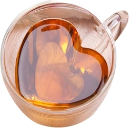 Élégante tasse en verre en forme de cœur d’une capacité de 250 ml, en verre borosilicaté résistant avec double paroi pour une meilleure isolation thermique. Idéale pour le café chaud, le thé aromatique ainsi que les boissons froides et les desserts. Grâce à sa construction isolante, la boisson conserve sa température plus longtemps, tandis que la paroi extérieure reste agréablement fraîche pour une prise en main sûre.