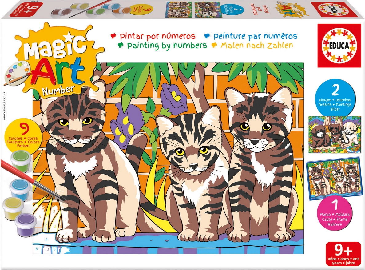 Découvrez la peinture par numéros avec de mignons chatons et chiots. Le kit de la marque EDUCA est idéal pour les enfants comme pour les débutants – chaque numéro correspond à une couleur, ce qui permet de créer facilement une belle image. Cette activité créative développe la concentration, la motricité fine et la reconnaissance des couleurs, et apporte beaucoup de joie grâce à l’œuvre réalisée de vos propres mains.