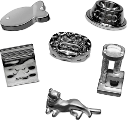- plateau de jeu, 6 pions de collection, cartes et argent de jeu (selon l’édition)