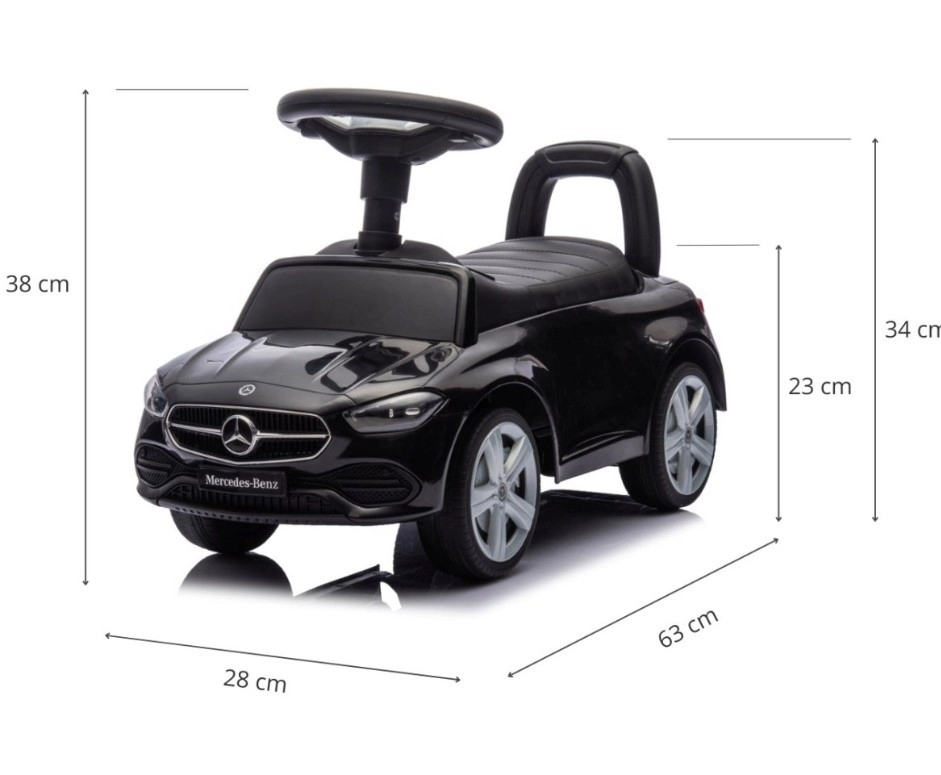 Le stylé porteur MERCEDES C‑CLASS en élégante couleur noire ravira les petits pilotes par son look réaliste et ses détails soignés. Il offre une conduite stable, une selle confortable avec dossier et un espace de rangement sous l’assise. Grâce aux roues avant pivotantes et au klaxon fonctionnel, il développe la motricité, la coordination et l’imagination de l’enfant, tandis que la protection anti-basculement garantit un jeu sûr à la maison comme à l’extérieur.