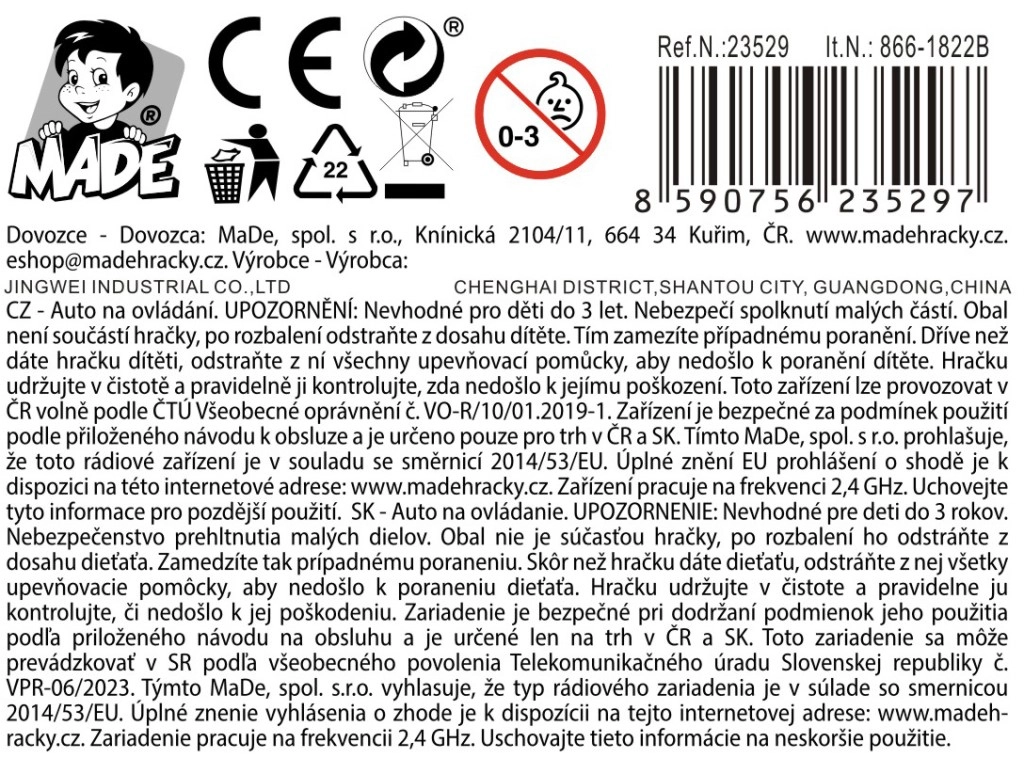 Découvrez le plaisir de conduire avec cette petite voiture RC de 24 cm. Grâce à sa commande facile, elle est idéale pour les plus jeunes pilotes et offre un excellent équilibre entre simplicité et amusement. Sa fabrication en plastique de qualité résiste au jeu quotidien et son design élégant attire le regard dès le premier coup d’œil.