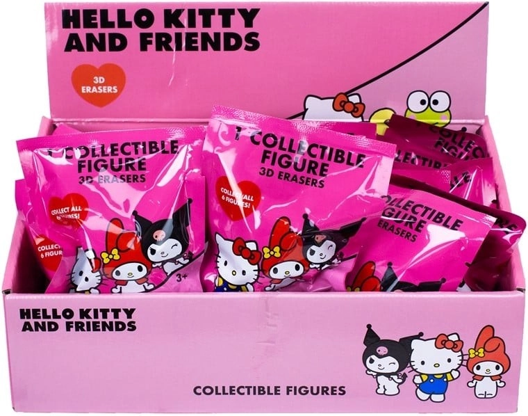 Ces gommes 3D à l’effigie de Hello Kitty & Friends apportent la magie de Sanrio à l’écriture du quotidien. Chaque blind bag contient une gomme de qualité au joli design 3D, qui ravira autant les écoliers que les collectionneurs. Grâce à son format compact, elle se glisse facilement dans la trousse et égaye chaque cours.