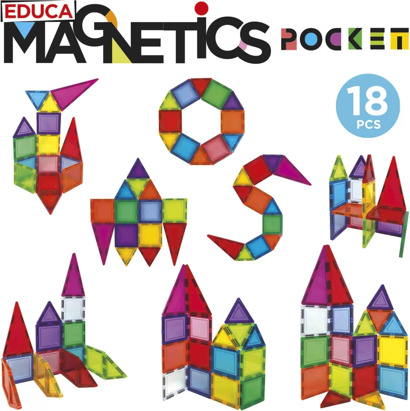 Découvrez un univers créatif avec le jeu de construction magnétique Educa Magnetics dans un étui pratique. Le set de 18 pièces stimule la perception visuelle, la motricité fine et la coordination œil–main. Les pièces sont sécurisées, aux formes arrondies, et permettent d’assembler une grande variété de objets 3D à partir de polygones 2D.