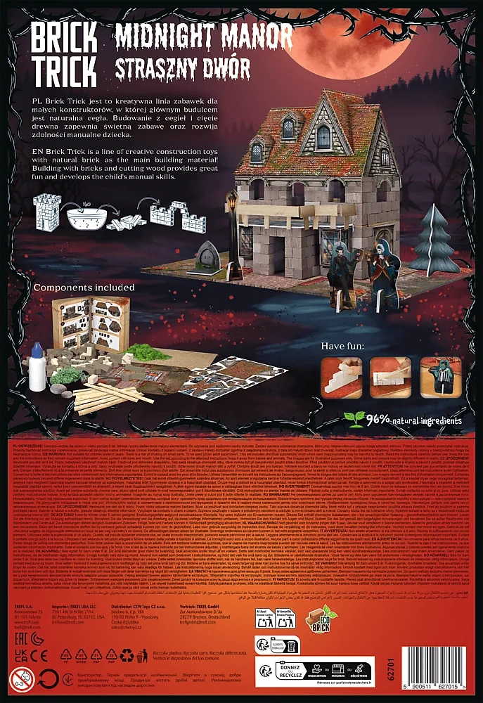 Devenez un petit constructeur et bâtissez pas à pas votre propre maison hantée depuis les fondations. De vraies briquettes d’argile, des planches en bois et des décorations détaillées transforment chaque construction en un projet unique. Grâce à la colle soluble dans l’eau, le modèle peut être démonté à tout moment et reconstruit.