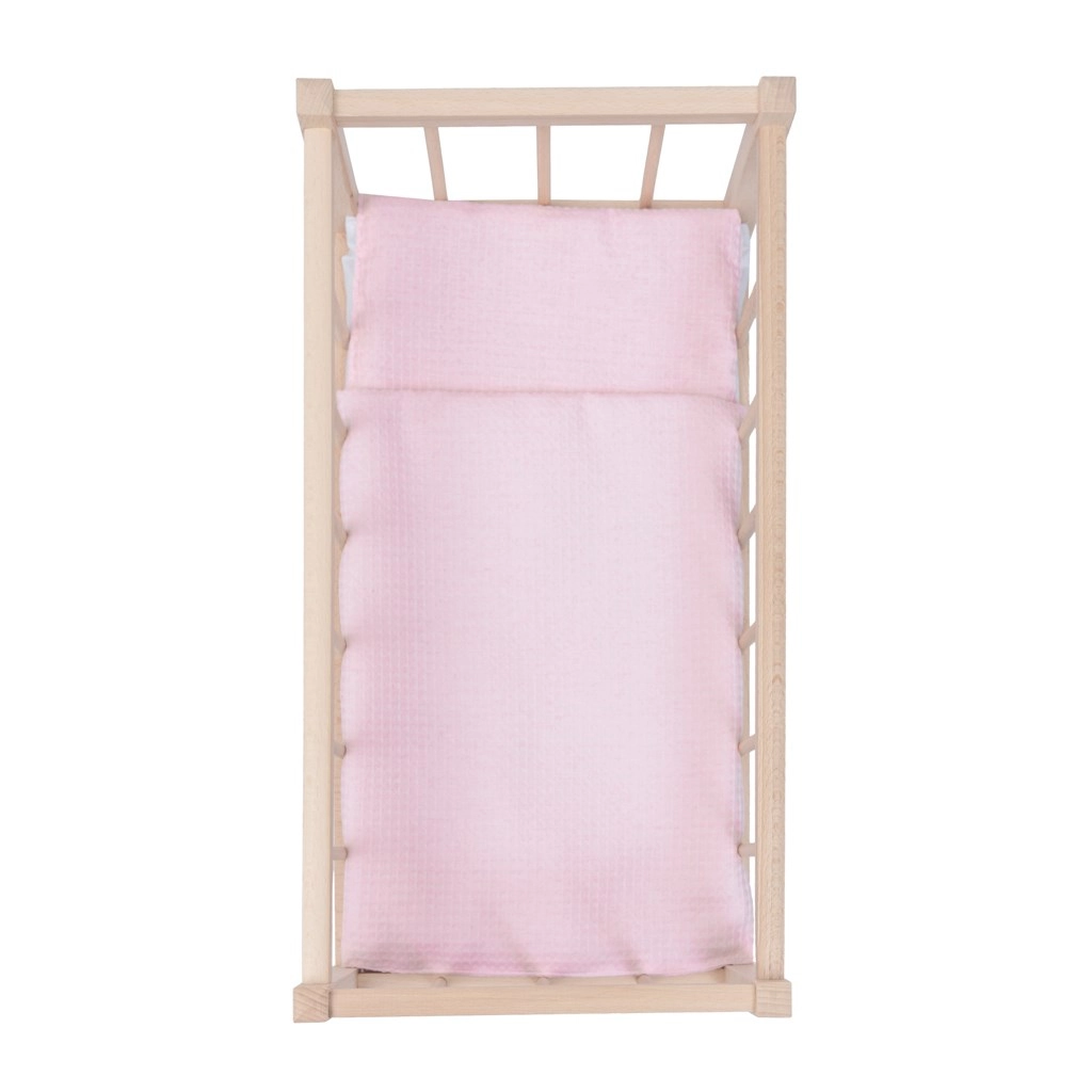 Ce berceau en bois pour poupées allie look naturel, sécurité et plaisir de jeu. Le bois finement poncé sans arêtes vives est doux pour les petites mains et la construction solide assure une longue durée de vie pour un usage quotidien. Sont inclus un matelas tout doux et un ensemble de literie réversible dans de tendres tons de rose, qui s’accordent avec toute chambre d’enfant.
