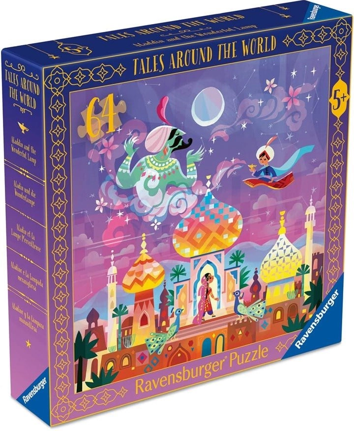 Découvrez la magie du conte avec le puzzle de qualité RAVENSBURGER au motif ALADDIN et la lampe merveilleuse. Idéal pour les enfants grâce à ses 64 pièces, sa découpe précise et son format 33,3 × 33,3 cm une fois assemblé. Parfait pour développer la patience, la motricité fine et la concentration.