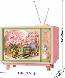 Découvrez le charme du printemps japonais dans une boîte à musique au design de téléviseur rétro. Des tons pastels délicats, un tramway en mouvement et des cerisiers en fleurs créent une atmosphère relaxante teintée de nostalgie. Grâce aux lumières LED et aux mélodies « Minuet in G Major » et « Jesu, Joy of Man’s Desiring », ce modèle illumine tout intérieur – du salon au bureau.