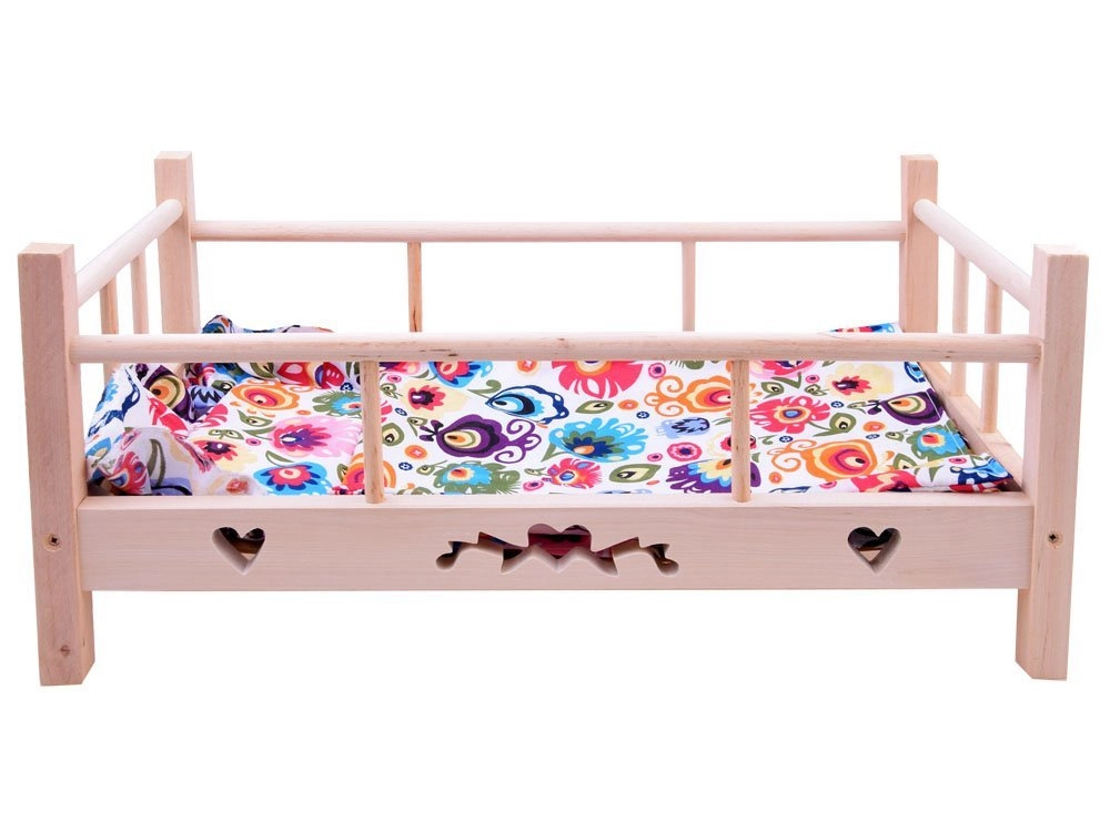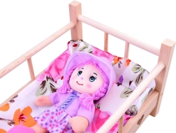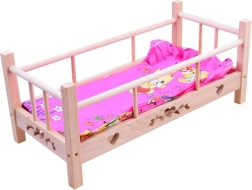 - Lit en bois, oreiller, couverture (poupée non incluse)