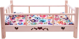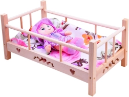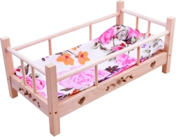Offrez à votre poupée ou à votre peluche un sommeil confortable. Ce lit en bois est fabriqué en bois naturel non traité avec base et côtés en tissu, il est donc résistant, stable et sûr. Grâce à l’oreiller et à la couverture fournis, il est prêt à jouer dès le déballage.