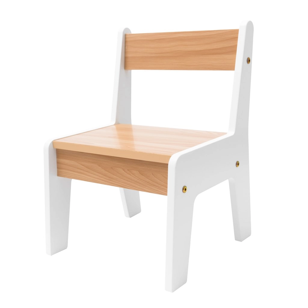 Son design minimaliste associant bois naturel et blanc s’intègre facilement aux intérieurs modernes. Les chaises conçues de manière ergonomique aident à maintenir la bonne hauteur d’assise à la table et favorisent la concentration ainsi que de bonnes habitudes lors des activités créatives.