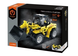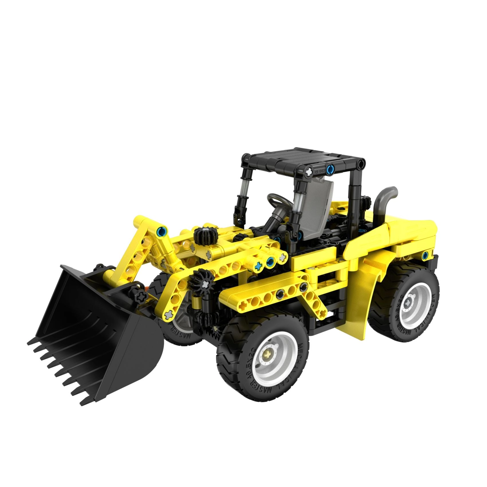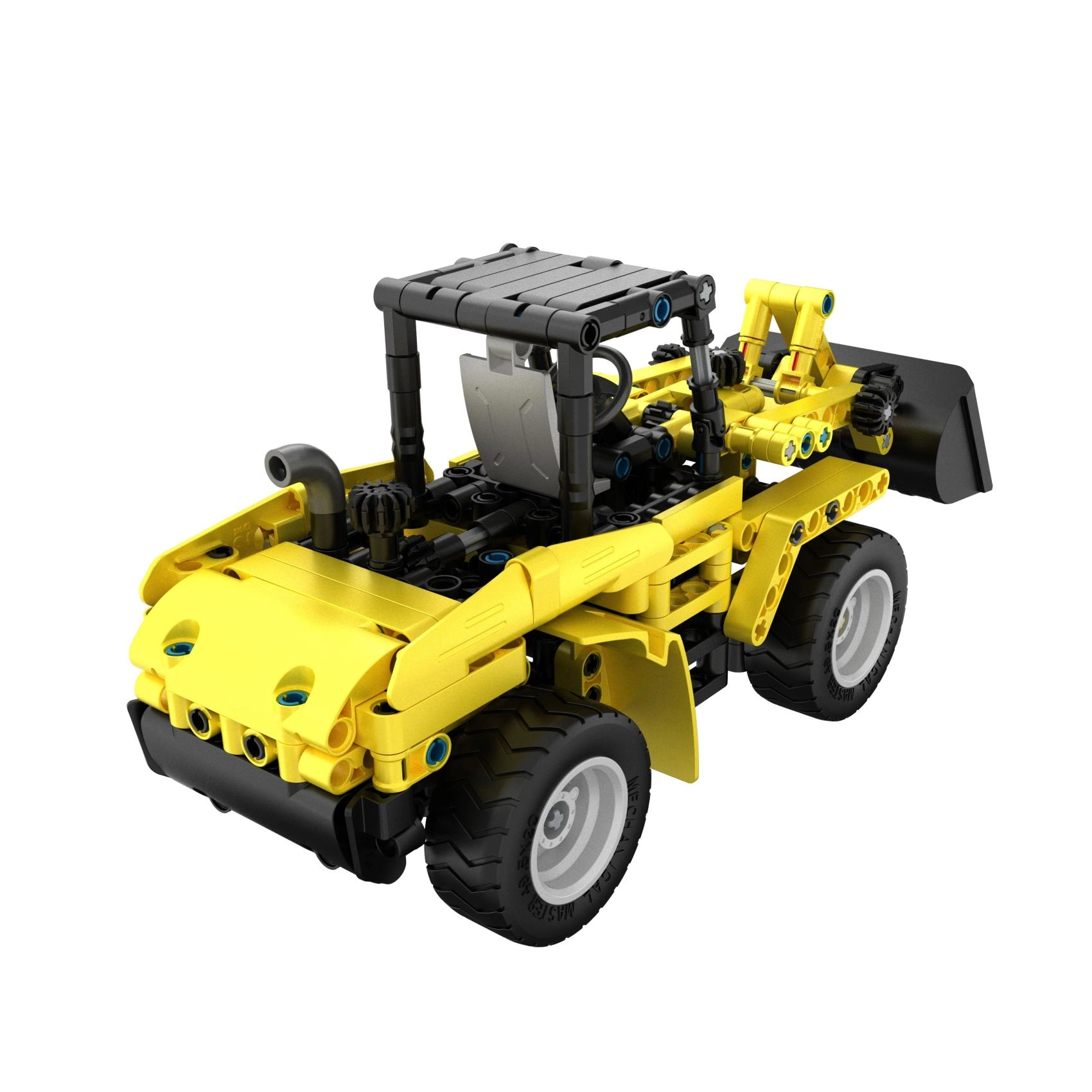 Assemblez une chargeuse de chantier réaliste avec quatre grandes roues et un bras avec benne que l’on peut lever et charger. Idéal pour jouer et apprendre les principes de la mécanique.