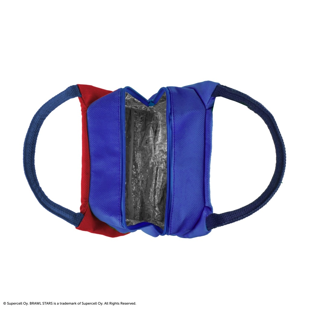 Le sac se distingue par une combinaison de couleurs bleu et rouge, le motif El Primo et l’étoile emblématique de Brawl Stars. Grâce à ses dimensions compactes, il se glisse dans un cartable ou un sac à dos, tout en offrant assez d’espace pour une boîte à goûter, une bouteille ou un petit conteneur à fruits.
