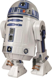 Le modèle est équipé de LED rouges et bleues, d’effets sonores authentiques de la saga et reproduit fidèlement le design iconique. La tête de R2-D2 pivote jusqu’à 180°, avec pièces mobiles et nombreux détails. L’application inclut en outre une galerie interactive qui montre les réactions de R2-D2 face aux personnages emblématiques de STAR WARS.