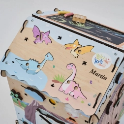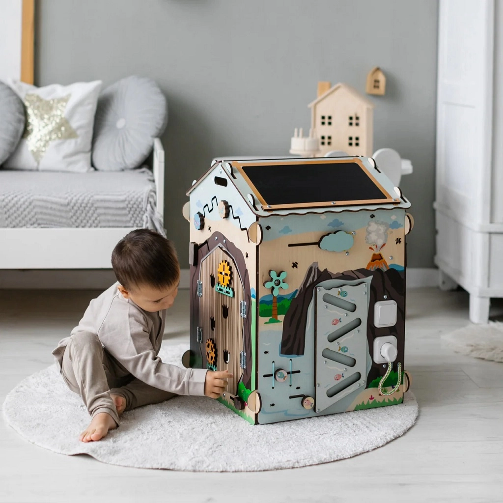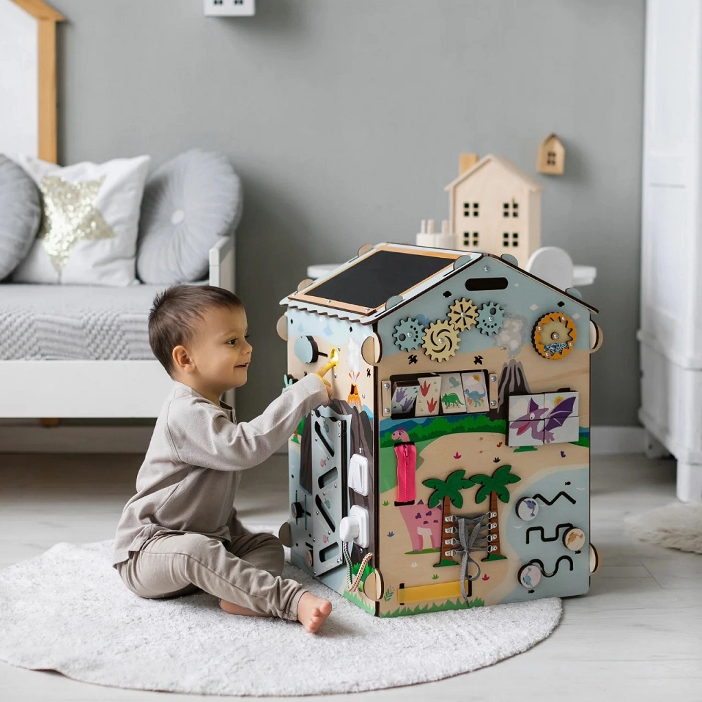 Découvrez la maison Montessori en bois BusyKids au motif DINO, qui propose environ 30 éléments interactifs pour développer la motricité fine, la coordination œil–main et la pensée logique. Sa structure stable en contreplaqué de bouleau, ses vernis à l’eau sûrs, ses effets lumineux (volcan et soleil) et son tableau sur le toit en font un choix idéal pour les tout‑petits et les enfants d’âge préscolaire.