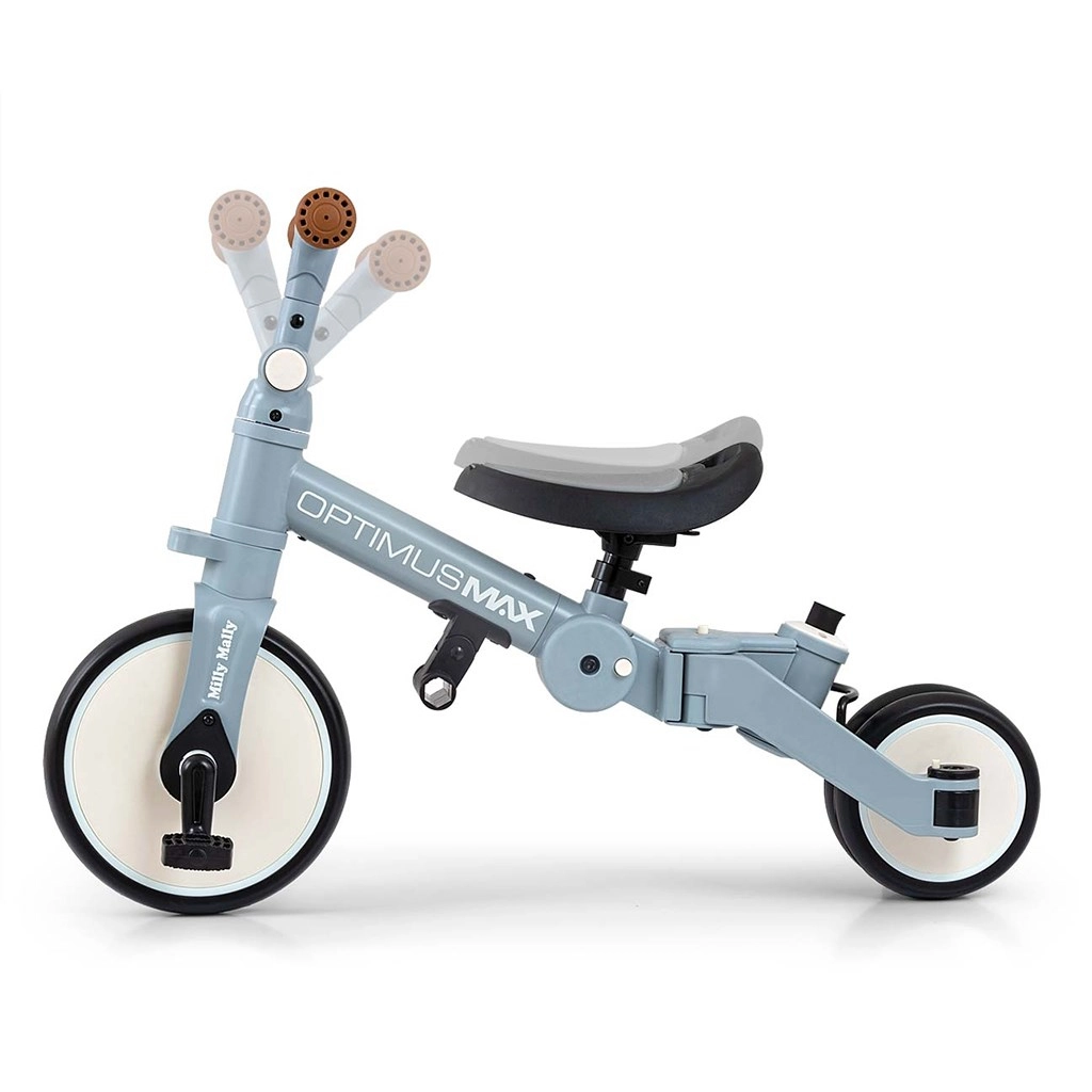 KINDERKRAFT OPTIMUS MAX est une solution bien pensée pour les premières balades – de l’assistance parentale à l’autonomie. Le cadre en acier robuste, les pneus en mousse et la selle profilée avec harnais réfléchissant à 3 points assurent confort et sécurité. Le limiteur d’angle du guidon évite les retournements, tandis que les petites roues arrière rabattables facilitent le changement de mode.
