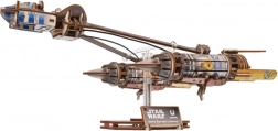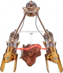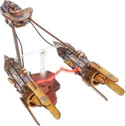 Assemblez l’iconique podracer d’Anakin Skywalker de l’univers Star Wars et exposez-le sur un élégant socle avec effet de vol. Le modèle en contreplaqué coloré propose un arc plasma LED entre les moteurs, un cockpit ouvrant avec figurine et un mouvement latéral simulant le vol. Le montage se fait sans colle ni outils, pour plaire aux collectionneurs comme aux amateurs de maquettes.