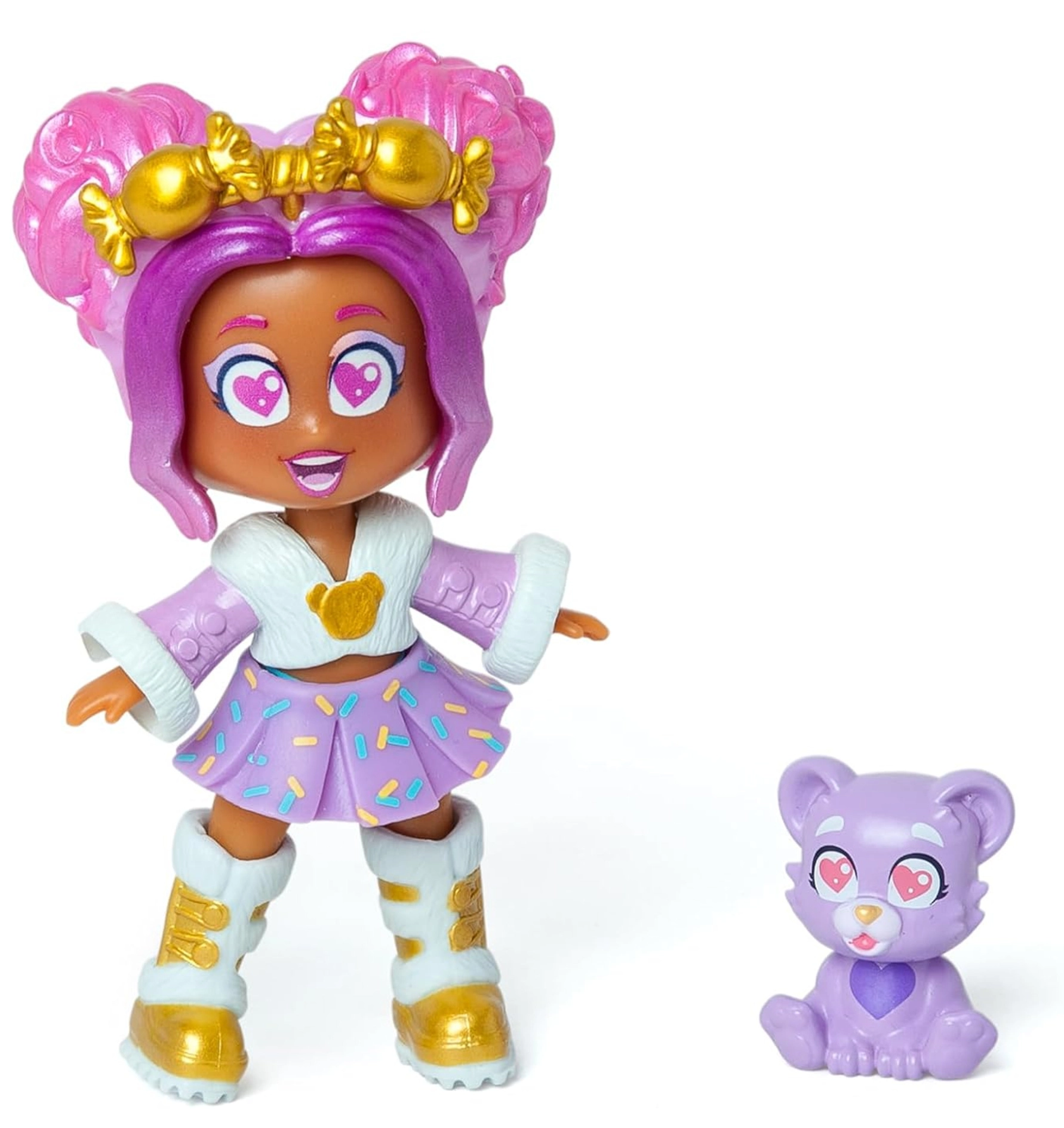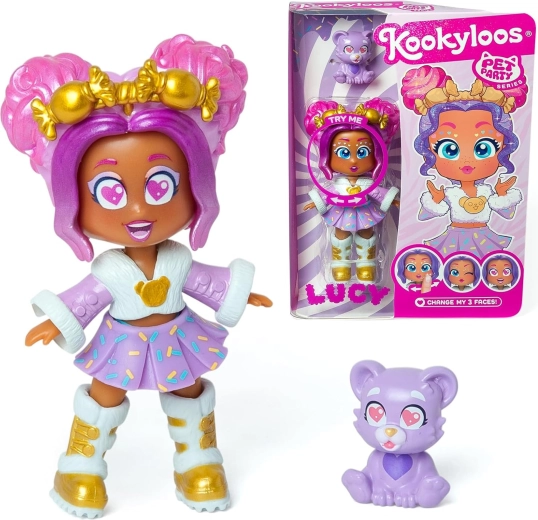 La poupée KookyLoos Lucy de la collection Pet Party combine un style fête affirmé, des tenues et accessoires détaillés avec la possibilité de changer rapidement de mimique. En tournant simplement la tête, vous obtenez trois expressions différentes qui apportent émotion et amusement au jeu. Le coffret comprend également son fidèle animal de compagnie – ourson, pour inventer vos propres histoires.