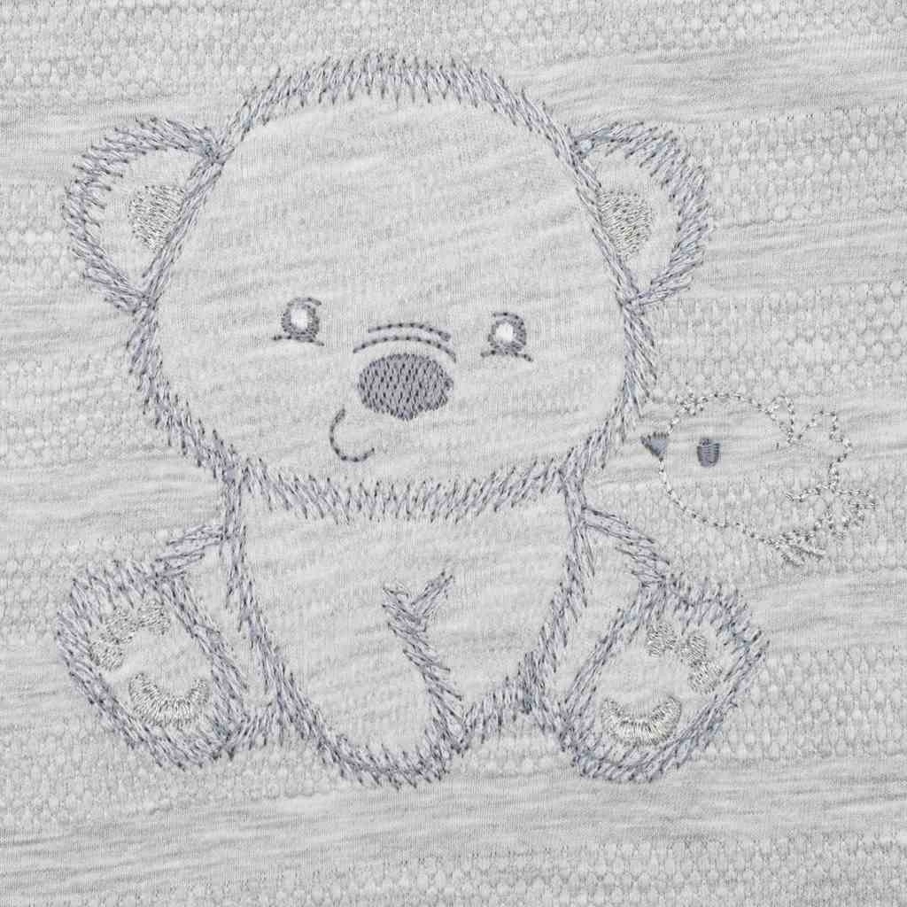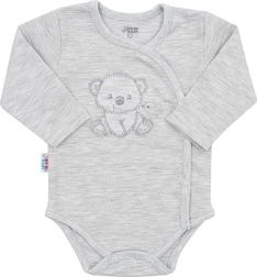 Adorable ensemble naissance NEW BABY Sweet Bear dans une élégante couleur grise, idéal pour la maternité et les premières semaines à la maison. Il comprend un body croisé à manches longues, une grenouillère, une veste et un bonnet à nouer. La 100 % coton toute douce est délicate pour la peau sensible de bébé, les pressions pratiques facilitent le change et l’habillage, et les motifs ours brodés apportent une touche de charme.
