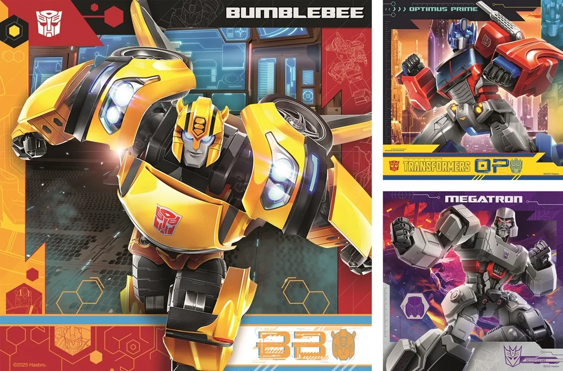 Découvrez le plaisir de jouer avec le set Ravensburger puzzle Transformers 3×49, qui allie fabrication de qualité et héros populaires de l’univers TRANSFORMERS. Chacun des trois puzzles propose un motif distinct et, une fois assemblé, offre un format compact d’environ 21 × 21 cm, idéal pour l’exposition ou pour être refait à volonté.