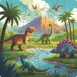 En plus des pièces du puzzle, la boîte contient également 4 figurines en bois que les enfants peuvent intégrer à leurs propres histoires. Ce set favorise les capacités de coordination, la concentration et la patience, tout en offrant beaucoup de plaisir avec le thème populaire des dinosaures.