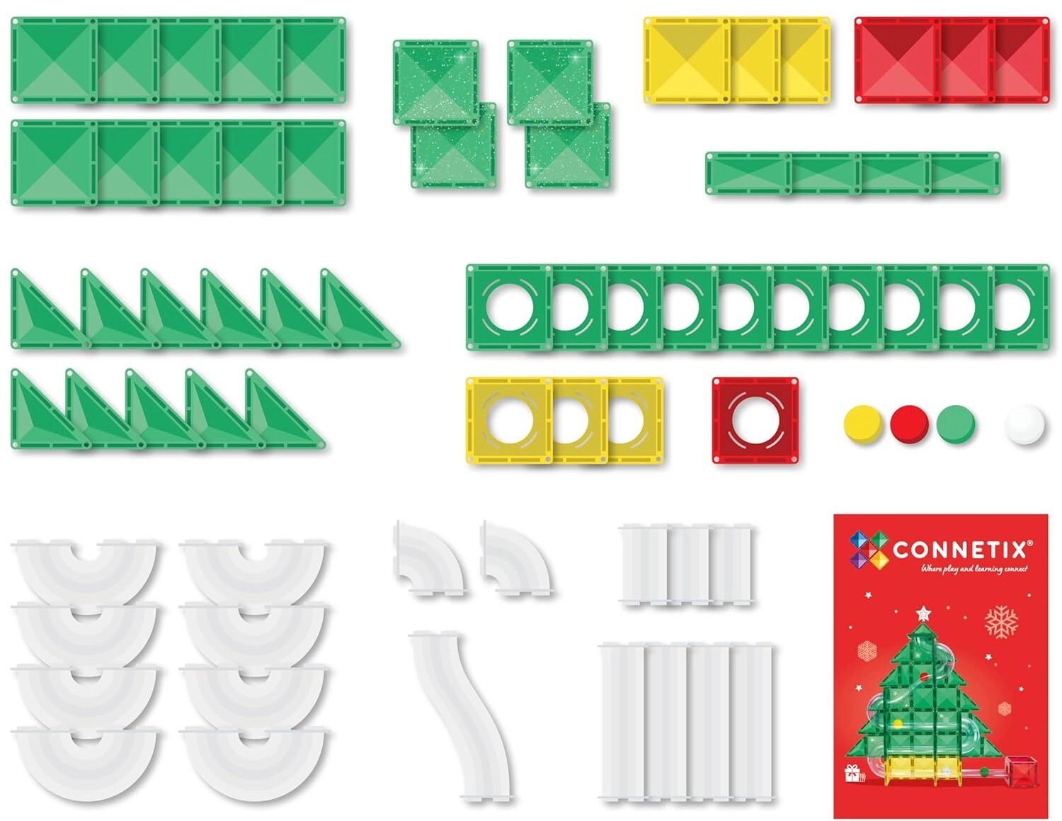 Le set de Noël en édition limitée CONNETIX Christmas Tree Special Edition Ball Run Pack aux couleurs vives et scintillantes est idéal pour créer des modèles 2D et 3D et des pistes rapides pour billes. Grâce aux aimants au néodyme puissants, les pièces s’attirent de tous les côtés et les constructions gardent leur forme. Le « clic » caractéristique à l’assemblage offre une satisfaction immédiate et motive à poursuivre les expériences.