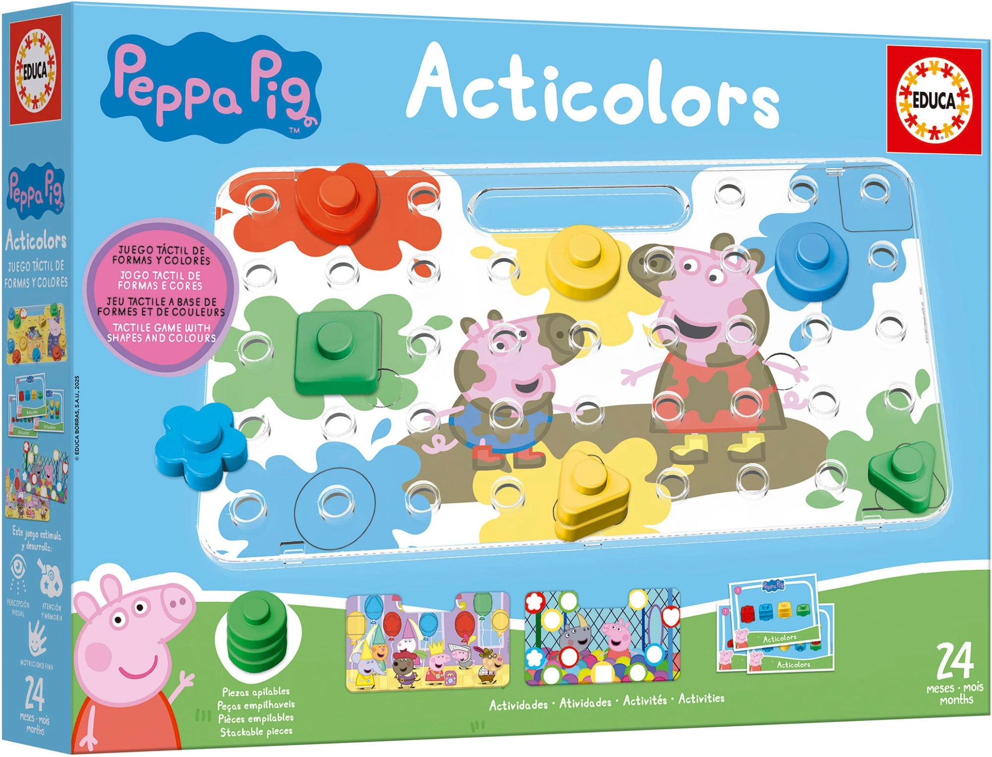 Explorez le monde des couleurs et des formes avec les personnages préférés de PEPPA PIG. Le jeu didactique EDUCA Acticolors est conçu pour les tout-petits afin d’apprendre en jouant : ils associent les pièces aux modèles, exercent la coordination œil–main et renforcent la pensée logique. Grâce à des composants solides et à une plaque pratique avec poignée, le jeu est confortable à la maison comme en déplacement.
