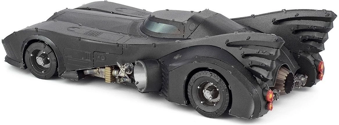 Les feuilles d’acier gravées au laser restituent les courbes iconiques, les prises d’air et le rivetage de la Batmobile pour un rendu des plus réalistes.
