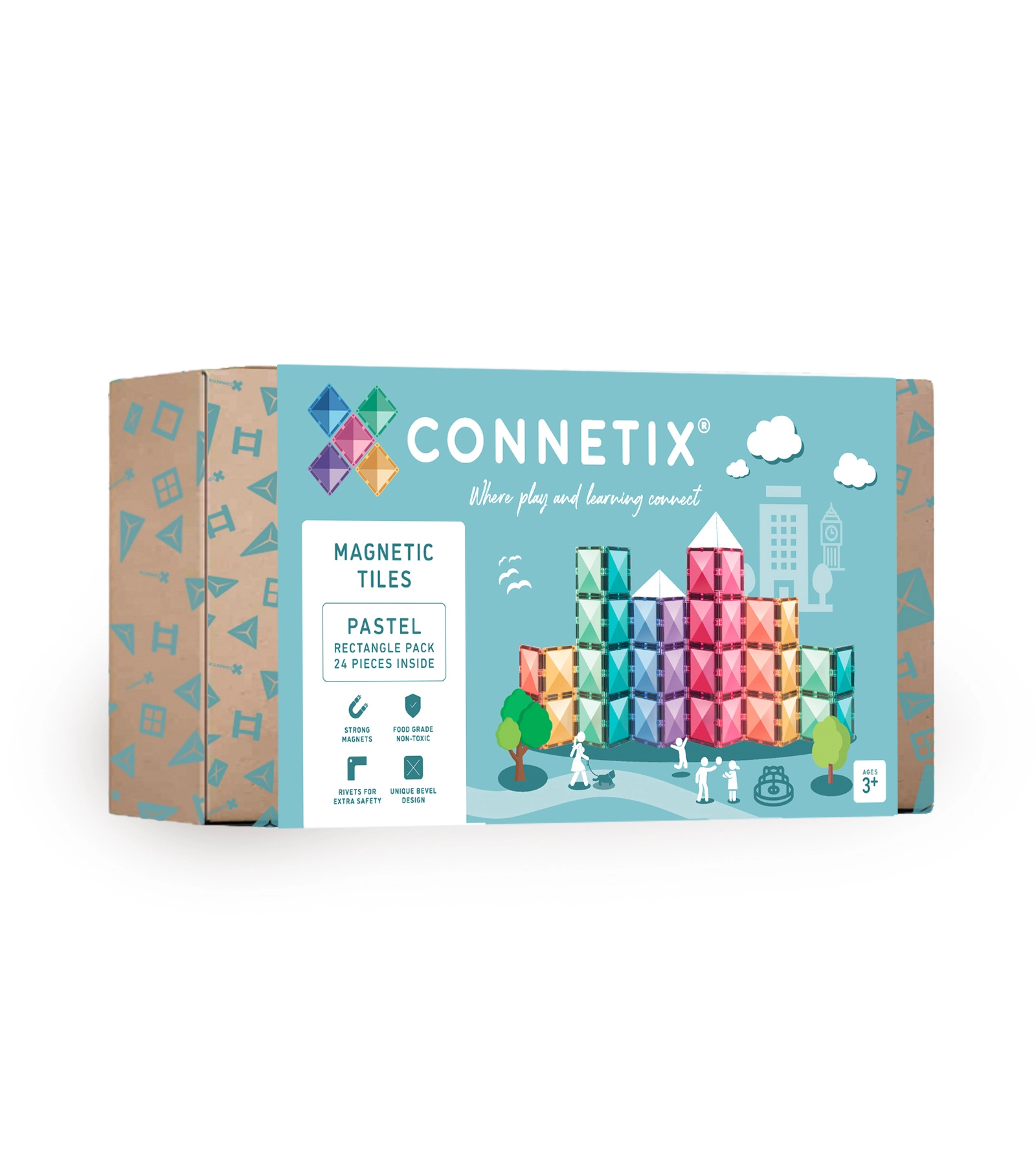 Le set pastel CONNETIX apporte des pièces rectangulaires transparentes et résistantes aux teintes douces, qui s’attachent avec un « clic » assuré. Les enfants exercent de manière ludique la géométrie, la physique et la représentation spatiale tout en construisant des ponts, des tours, des pistes ou des mosaïques. Une fabrication sûre sans BPA ni phtalates et des bords arrondis garantissent un jeu confortable et sécurisé dès 3 ans.