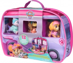 - Caravane portable, 3 figurines (Skye, Liberty, Everest), 2 animaux (ourson, lapin), tapis, bras de sauvetage, sac à dos, filet, brancard