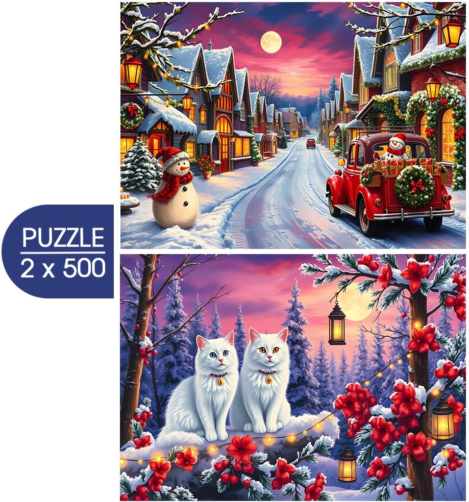 Découvrez la magie de Noël avec le duo de puzzles BLUEBIRD, proposant deux superbes illustrations hivernales de 500 pièces. Chaque puzzle terminé mesure approximativement 47,8 × 34,2 cm, parfait pour l’encadrement ou comme décoration d’intérieur.