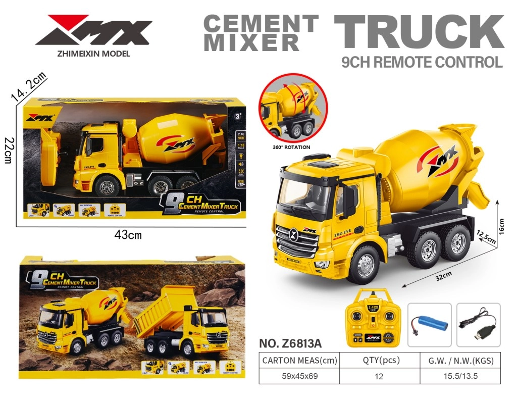 Découvrez un camion toupie RC finement détaillé qui reproduit fidèlement une véritable machine de chantier. Dans une finition jaune vif avec des éléments noirs et argentés, il se distingue par une cabine réaliste, des fenêtres transparentes et surtout un tambour fonctionnel avec rotation à 360°. La commande 2,4 GHz fiable assure un signal stable sans interférences et une portée jusqu’à 30 mètres.