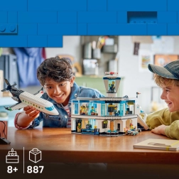 Découvrez un aéroport LEGO City réaliste avec un terminal moderne, une tour de contrôle et un avion de ligne stylé. Ce set de 887 pièces pour les enfants dès 8 ans offre de nombreuses fonctions interactives – du pont d’embarquement et du scanner de bagages à la cabine ouvrante et au détecteur de métaux rotatif. Inclut 9 minifigurines pour des histoires sans fin et une connexion avec d’autres sets LEGO City.
