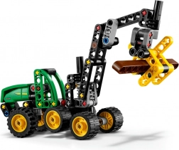 Six grosses roues, une cabine verte et des détails jaunes donnent au modèle l’apparence authentique des machines forestières JOHN DEERE.