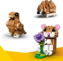 Construisez un adorable hamster avec une fleur, reconvertissez-le en hérisson ou en oiseau près d’un nid avec un œuf – un seul set, trois possibilités de jeu et d’exposition.