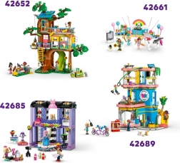 L’aire de jeux intérieure amusante LEGO Friends est conçue pour les enfants joueurs qui veulent explorer, créer et inventer leurs propres histoires. Trois sections reliées avec des attractions offrent des défis variés – du filet d’escalade orange au toboggan bleu menant à une piscine à balles colorées, jusqu’au trampoline, manège et adorable lapin sauteur. Des accessoires réalistes complètent l’ensemble, comme un stand de hot-dogs et granité, une borne de danse, un distributeur de chewing-gums et une caisse.