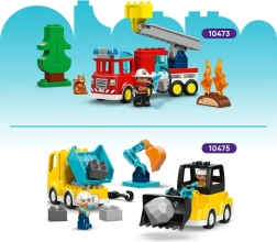 De grosses briques faciles à saisir et une moto roulante développent la motricité fine et la coordination des mouvements lors du poussage et de la construction.