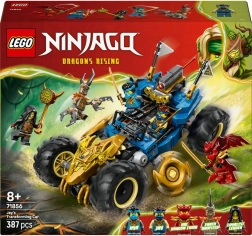 Vivez des aventures pleines d’action avec l’ensemble LEGO NINJAGO La voiture de transformation de Jay pour les enfants dès 8 ans. Le 4x4 bleu robuste aux grandes pneus et aux détails dorés se transforme en un clin d’œil en mode dragon avec tête de dragon pivotante, shurikens rotatifs et griffes dorées. Il comprend également un lanceur à ressort avec deux projectiles, de la place pour deux minifigurines et cinq personnages, dont Jay, Nya, Kai en forme de dragon, ainsi que des méchants pour des duels épiques entre le bien et le mal.