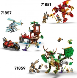 Le set propose 387 pièces qui stimulent la créativité, la motricité fine et l’imagination. Le modèle se convertit facilement en mode dragon – l’avant pivote pour former une tête de dragon avec capot transparent, les côtés arborent des shurikens rotatifs et l’ensemble dégage une impression de dynamisme grâce aux grandes roues et aux accents dorés.