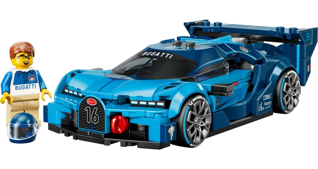 Vivez l’adrénaline des championnats avec le modèle BUGATTI Vision GT, qui impressionne par les lignes fidèles de sa carrosserie, sa calandre avant en fer à cheval avec le numéro 16, ses huit phares, son aileron de toit et son aileron arrière spectaculaire. Les pneus larges imprimés confèrent à la voiture un look de course réaliste et la minifigurine de pilote vêtue du logo BUGATTI s’installe confortablement dans le cockpit.
