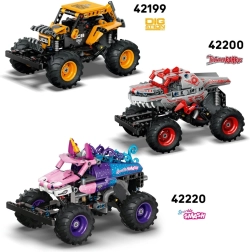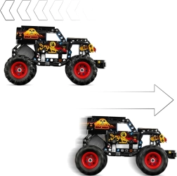 Ce modèle de la gamme LEGO Technic restitue fidèlement l’atmosphère de l’arène Monster Jam. Un côté du véhicule arbore des motifs flamboyants avec jantes rouges, l’autre est décliné en bleu glacé avec roues bleues. Grâce au moteur à rétrofriction, il suffit de tirer vers l’arrière pour que le truck fonce vers l’avant et réalise sauts, dérapages et super figures – le tout sans piles.