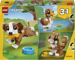 Construisez un petit chien avec collier, gamelle et os. Grâce à la tête, aux oreilles, aux pattes et à la queue articulées, il se met facilement en poses amusantes pour jouer ou l’exposer.