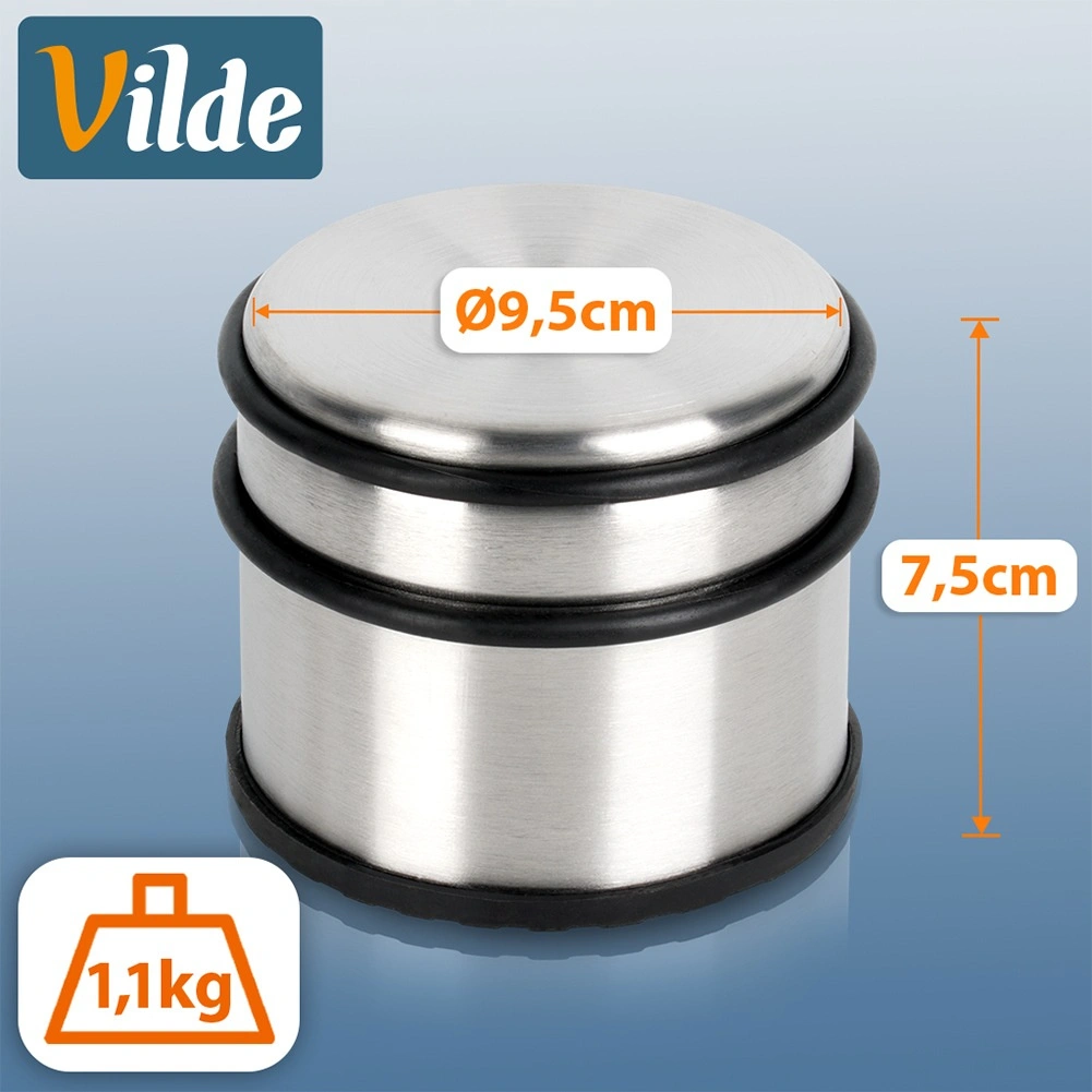 Élégante et lourde, la butée de porte en acier inoxydable de couleur argent est idéale pour appartement, maison ou bureau. Son poids élevé de 1,1 kg assure une excellente stabilité, pour que la porte reste exactement où vous en avez besoin. Les anneaux en caoutchouc tout autour protègent la porte des impacts et la base en caoutchouc empêche le glissement tout en préservant le sol.