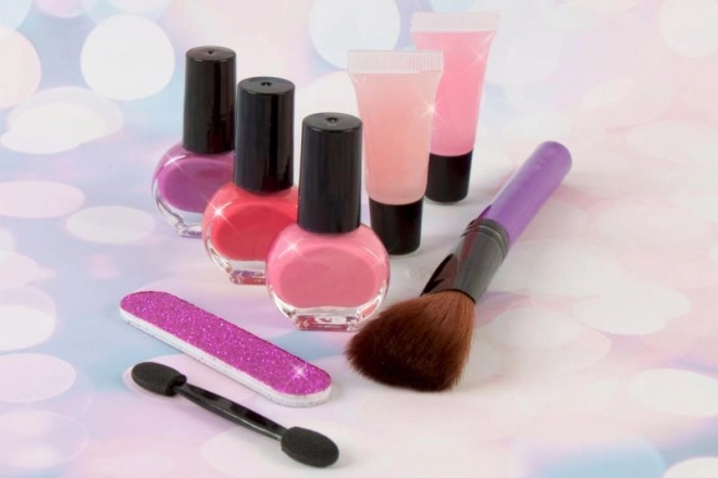 Découvrez l'ensemble cosmétique dans une élégante valisette, remplie de maquillages, de vernis à ongles et d'autres accessoires pour une parfaite mise en beauté des ongles et des lèvres, idéal pour les filles à partir de 8 ans.