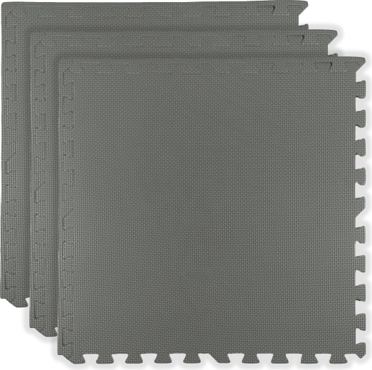 Trois pièces de 60 × 60 cm et six bordures s’assemblent comme un puzzle. Avec d’autres sets, vous créez facilement une surface plus grande ou un long tapis de couloir selon l’espace.