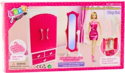 Créez la garde-robe parfaite pour les poupées avec ce set stylé en rose et blanc. La grande armoire avec portes ouvrantes et quatre tiroirs offre beaucoup d’espace pour les robes, accessoires et pièces favorites, tandis que le miroir sur pied avec cadre ornemental stimule les scènes de mode et le jeu quotidien.