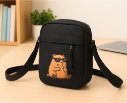Ce sac stylé avec une adorable capybara à lunettes apporte une touche originale à la tenue des enfants tout en gardant tous les essentiels à portée de main en toute sécurité. Grâce aux trois poches zippées, le contenu reste bien organisé et les objets importants séparés. Sa construction légère et son tissu résistant garantissent un usage quotidien confortable.