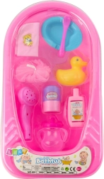 Ce set complet reproduit une véritable salle de bain et permet aux enfants de rejouer les rituels quotidiens de soins de la poupée. La petite baignoire rose, au design confortable, est idéale pour les poupées préférées, tandis que les accessoires comme le caneton, l’éponge ou le bol avec cuillère enrichissent les scénarios de jeu et renforcent le réalisme.