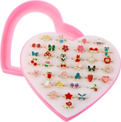Ce set coloré de bagues ravira toutes les petites coquettes. Grâce au diamètre ajustable, les bagues s’adaptent facilement aux doigts des enfants et offrent un port confortable et sûr. Le couvercle transparent de l’étui en forme de cœur permet un rangement clair et un choix rapide des motifs favoris.