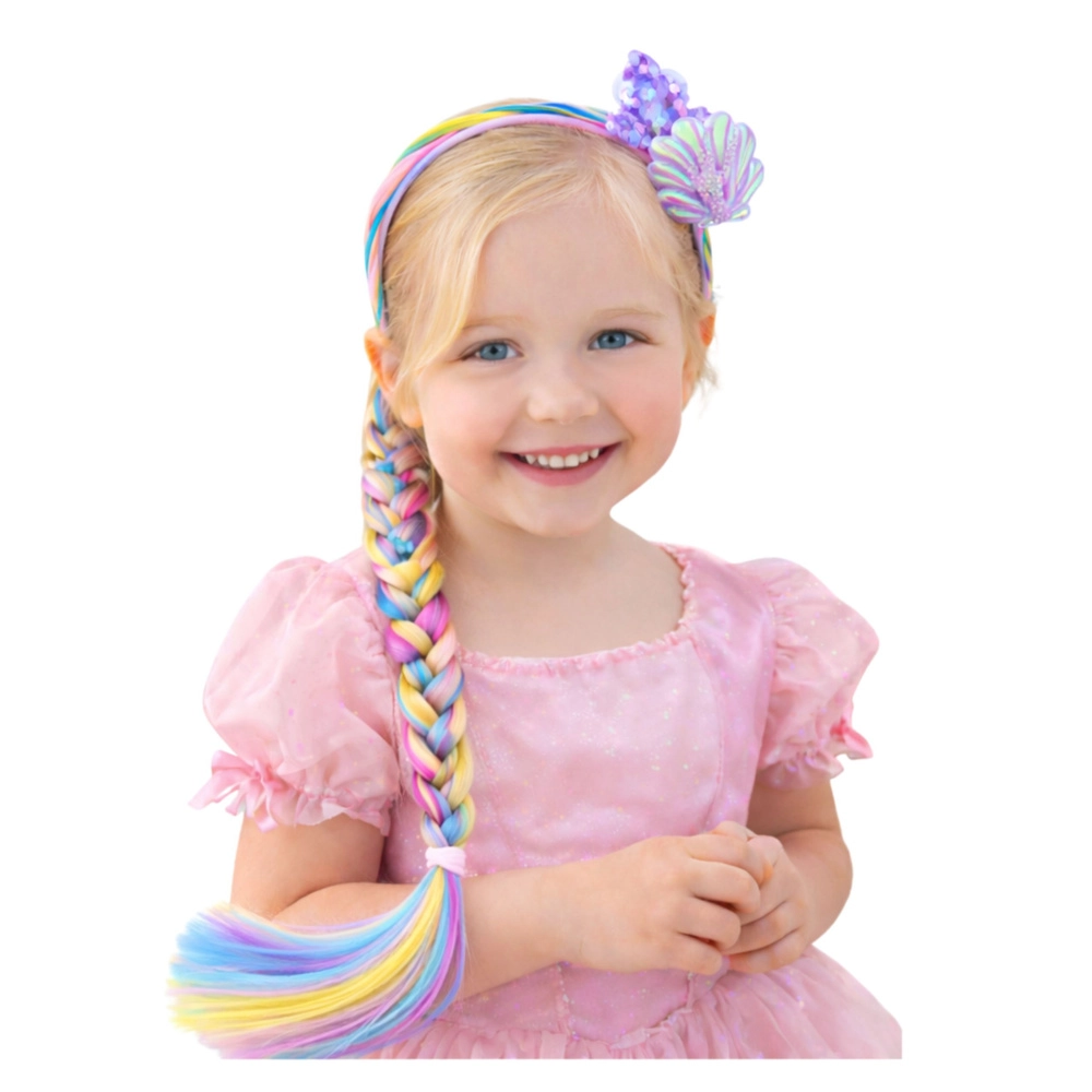 Offrez aux enfants la joie de créer des coiffures avec un serre-tête inspiré de l’univers des sirènes. De longues mèches arc‑en‑ciel permettent de tresser facilement des tresses spectaculaires et de réaliser des styles originaux pour les fêtes, carnavals et jeux du quotidien. Un décor de queue de sirène ajoute une touche magique au look.