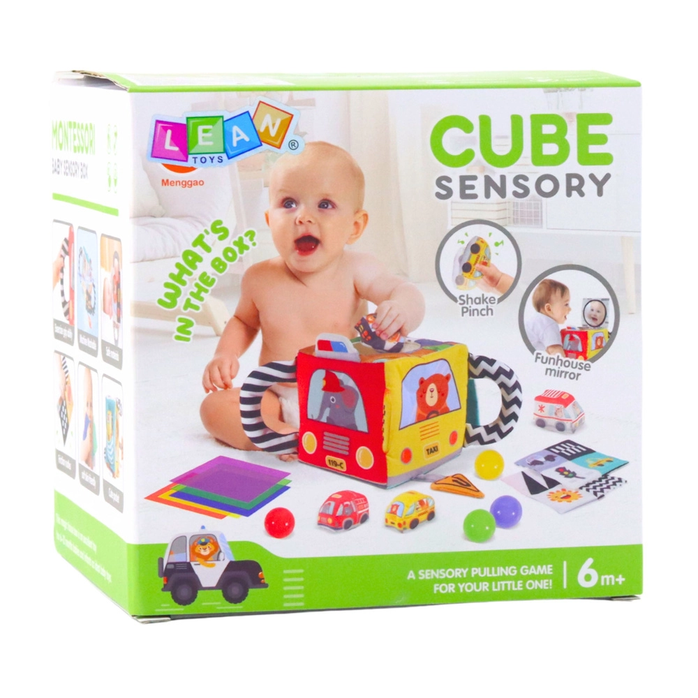 Cube sensoriel souple et coloré pour enfants dès 6 mois, qui favorise le développement des sens, la motricité fine et les capacités de coordination. Chaque face propose une activité différente – éléments bruissants, textures, découpes, miroir sécurisé, rubans à tirer ainsi que de petites voitures et billes souples. Le thème voitures et panneaux de signalisation éveille la curiosité et enseigne les premières notions de manière ludique.